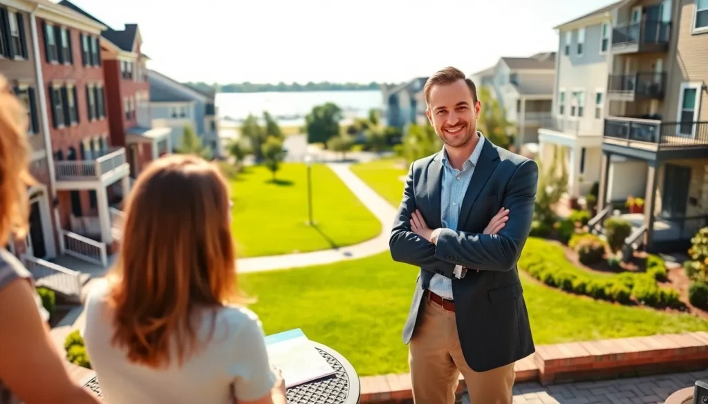 real estate professionals discussing properties in Newport News neighborhood.